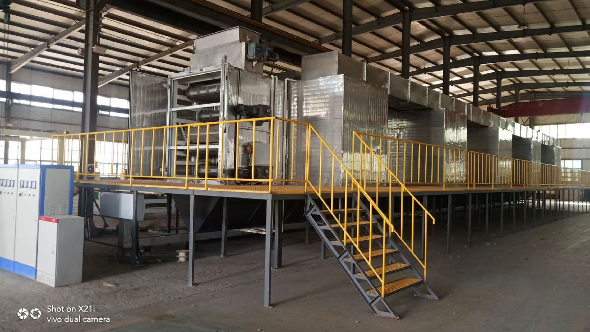 鏈網(wǎng)式污泥干化系統(tǒng)設(shè)備,由山東大學(xué)和山東省凱麟環(huán)保設(shè)備股份有限公司共同研發(fā)。該設(shè)備設(shè)計(jì)處理污泥60-100噸/天,適用于含水率60%的污泥干化至含水率30%的污泥顆粒,利用窯爐余熱對(duì)污泥進(jìn)行系統(tǒng)干化脫水處理,在干化過(guò)程中不產(chǎn)生二次污染,同時(shí)干化后的污泥顆粒作為原料進(jìn)行制磚,污泥含有一定熱量的有機(jī)物質(zhì),補(bǔ)充了高溫焙燒所需的熱量,降低了能源的消耗,真正達(dá)到污泥無(wú)害化、減量化和資源化利用的目的,是窯爐協(xié)同城市污泥資源化利用重要關(guān)鍵設(shè)備。